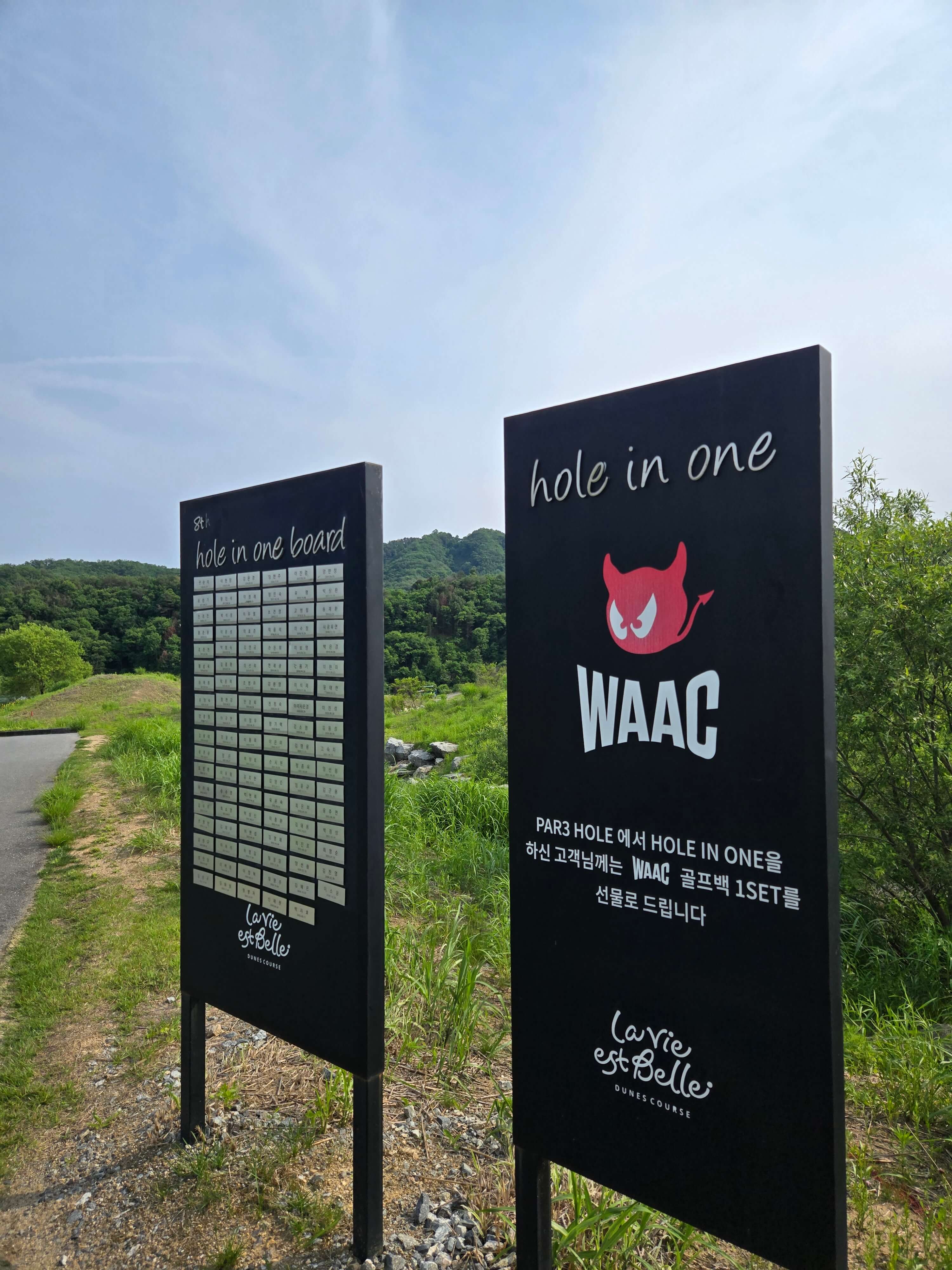 파3 홀에서 WAAC 골프백 1세트 경품 이벤트가 있긴 했지만, 현실은… 그냥 그림의 떡😅. 그래도 이런 이벤트가 라운드에