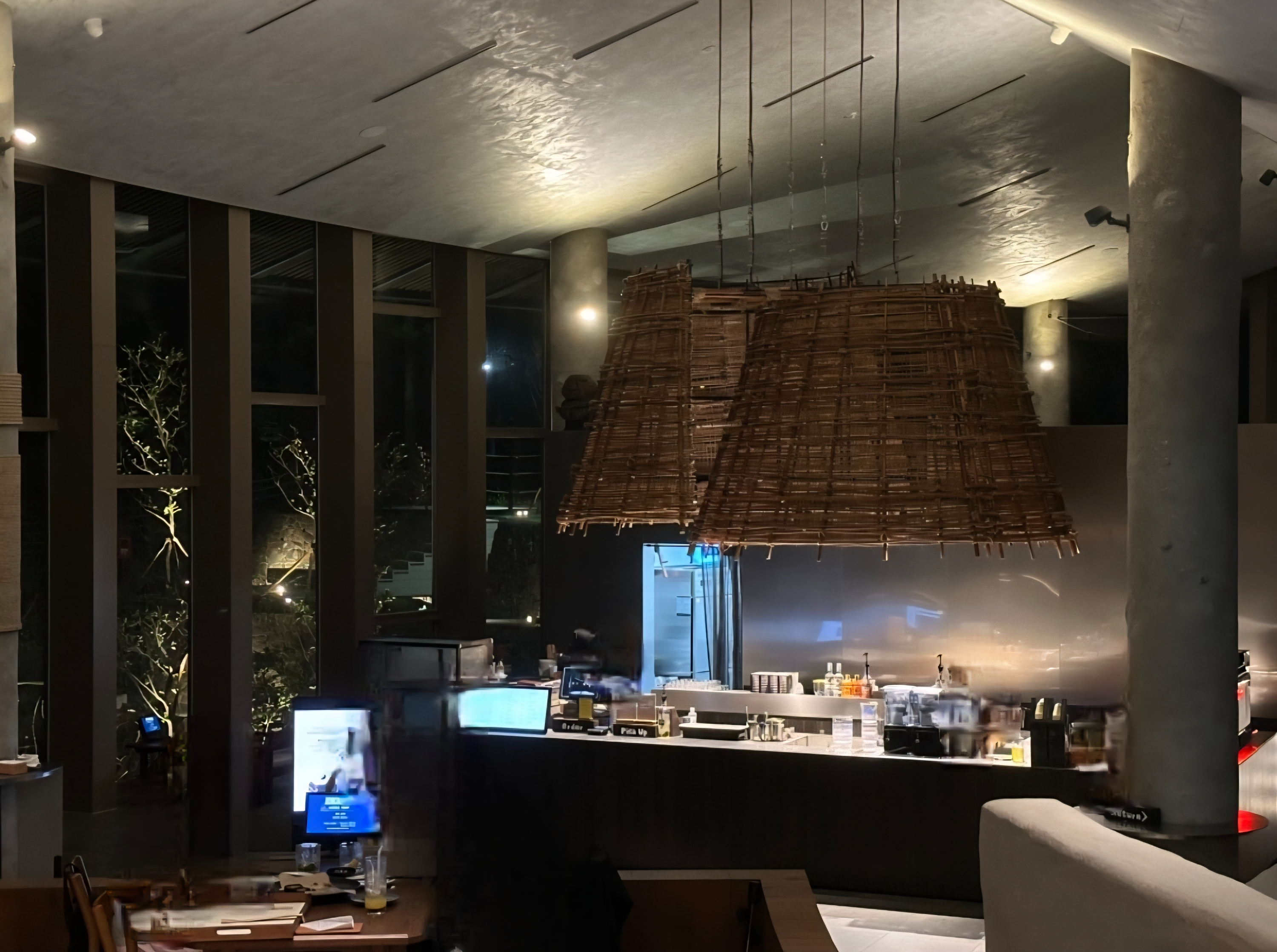 따뜻한 조명과 천연 소재가 어우러져