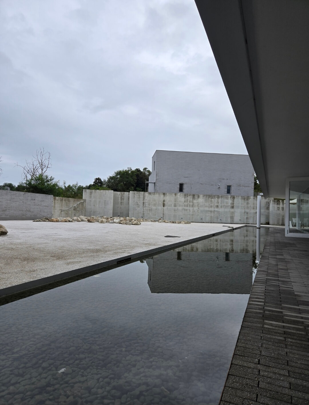 삼각형 천창을 통해 자연광이 쏟아지고, 노출 콘크리트와 낮은 천장이 만들어내는 분위기는 정말 독특하고 감각적입니다.실내내부는 콘크리트 벽면과 낮은 천장, 그리고 정제된 조명 아래 놓인 좌식 쿠션 자리는 조용히 혼자만의 시간을 가지기에도 좋아보였어요